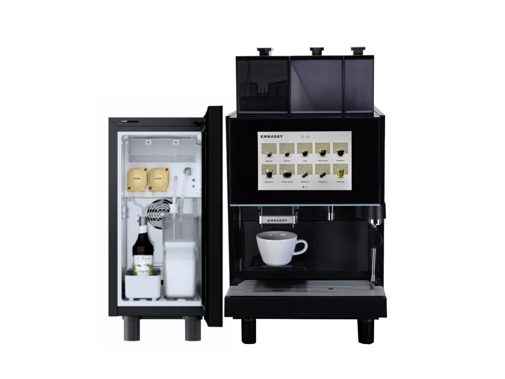 Embassy Bogota je profesionální automatický kávovar pro přípravu 200 káv denně. Je vybaven připojením na vodovodní řád, čtyřlitrovou vodní nádržkou, ocelovým mlýnkem, desetipalcovým dotykovým displejem a automatickým mléčným systémem pro tvorbu mikropěny o teplotě až 70 °C. Set s kompresorovou lednicí C2S pro napojení na jeden druh mléka a dva druhy sirupu.