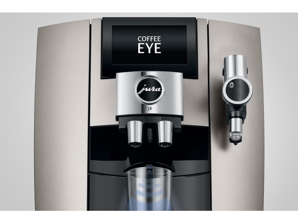 Jasnost a symetrie jsou charakteristikami vzhledu J8. Nejvyšší výrobní standardy a přesnost zpracování jsou důkazem kvality a kompetence. Zcela nová interpretace mezinárodně oceněného designového celku se vyznačuje láskou k detailu. Inscenace čerstvých kávových zrn, lákavé uživatelské rozhraní, nasvícení výsledku voňavé kávy - vše se snoubí v harmonický celek a zvýrazňuje suverenitu ušlechtilého automatického kávovaru.