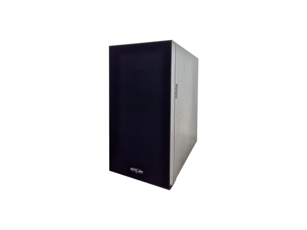 Profesionální lednička na mléko černé barvy, s možností připojení hadičky na mléko k automatickému kávovaru.