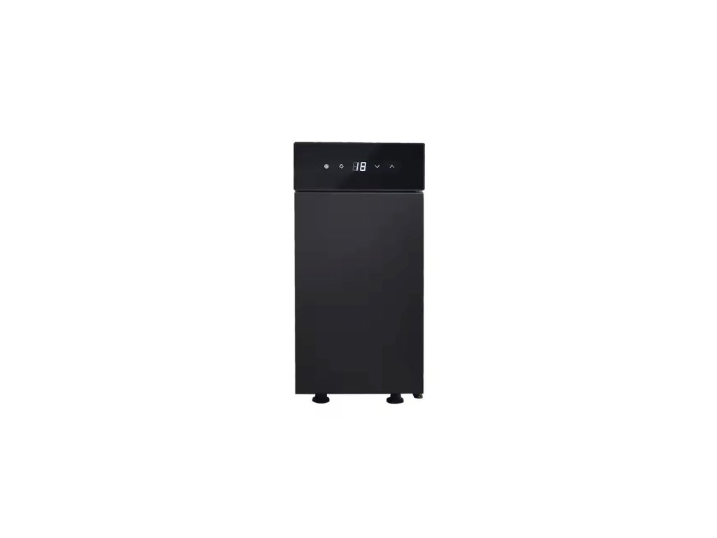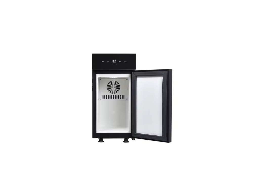 Profesionální lednička na mléko černé barvy, s možností připojení hadičky na mléko k automatickému kávovaru.