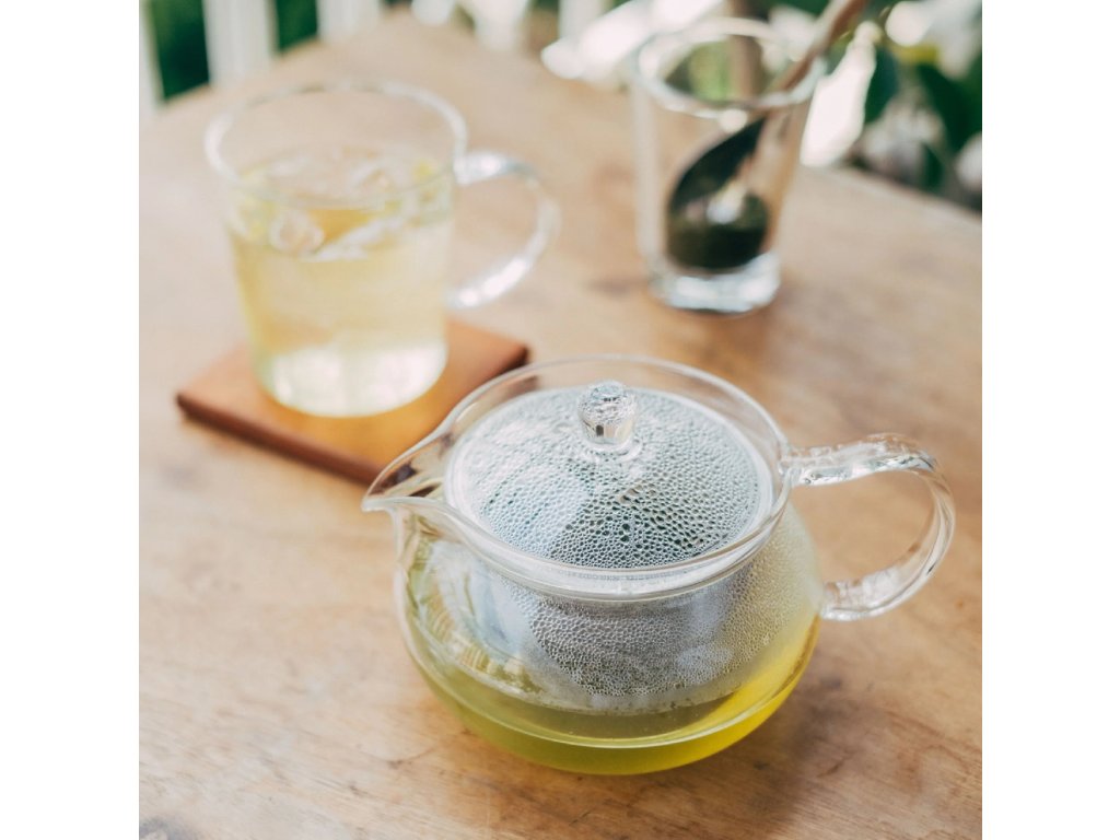 Hario Chacha Kyusu Maru je elegantní skleněná konvička na čaj. Její kulatý tvar, kompaktní objem 450 ml a jemné nerezové sítko z ní dělají ideální nádobu pro přípravu sypaných čajů – od zelených, přes bylinkové, až po bílé.