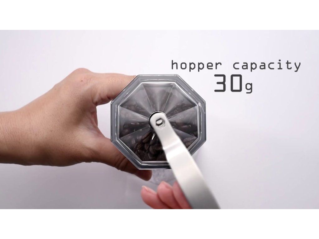 Praktický osmihranný (octagonální) tvar padne skvěle do ruky a usnadňuje manipulaci při mletí. Díky průhledné skleněné nádobě máte navíc vždy přehled o množství namleté kávy. Kapacita mlýnku je až 30 g, což vystačí na několik šálků čerstvé kávy.