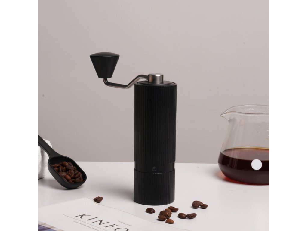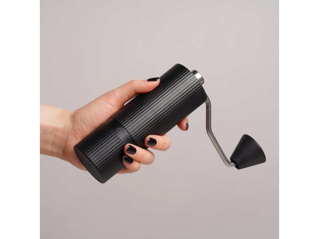 Mlýnek je vybaven kónickými ocelovými kameny, které zajišťují plynulé a rovnoměrné mletí. To oceníte především u metod jako V60 nebo moka konvička. Velkým plusem je jednoduché a přehledné nastavení hrubosti – regulace se nachází ve spodní části a díky 24 klikacím stupňům si snadno najdete a zapamatujete ideální nastavení. Tělo mlýnku je z odolného plastu, ideální na cesty! Nádobka na namletou kávu se k tělu přichycuje pomocí magnetu, což je nenápadný, ale velmi praktický detail. Klička dobře padne do ruky a díky ložisku je samotné mletí tiché a plynulé.